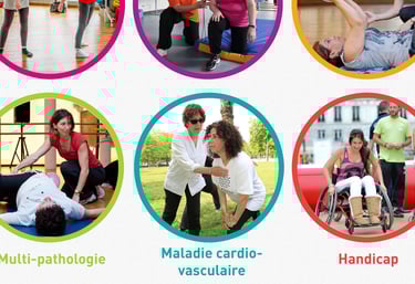 Les séances se font en petits groupes ; elles sont assurées par notre éducatrice sportive diplômée et formée spécifiquement. Chaque personne est unique, notre éducatrice adapte donc les mouvements, l’intensité et les postures en fonction des capacités physiques. Chacun fait ce qu’il peut et à son rythme : équilibre, stretching, renforcement musculaire, enchaînements dansés, marche, travail cardio…